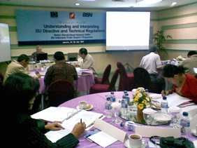 “UNDERSTANDING & INTERPRETING EU DIRECTIVE & TECHNICAL REGULATIONS” inilah Tema yang ditekankan oleh PT DASA PERFEKTA KOMUNIKA dalam Training yang mereka adakan pada 24 s/d 26 Juli 2007 tepatnya hari selasa – kamis yang berlokasi di Grand Melia, terlihat foto yang sedang serius mengerjakan pelatihan atau soal yang diberikan, acara tersebut juga bekerjasama dengan BSN (badan Standardisasi Nasional) serta EU Indonesia Trade Support Programme. dengan sangat senang untuk membantu mensukseskan acara tersebut kami Daxell.com dikontak langsung untuk menyewakan Note Book beserta LCD, kami harap dihari – hari mendatang serta di Event – event lainnya anda dapat mempercayakan kami kembali.